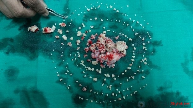 За семь часов операции хирурги извлекли изо рта Гаваи 231 зуб размером с жемчужину и один – как «мраморный» кирпичик, который пришлось удалять с помощью молотка и долота.