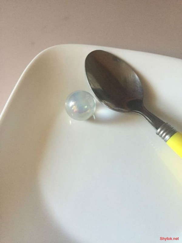 Это не перламутровая бусинка, а десерт. Сверху твердый, внутри жидкая начинка.